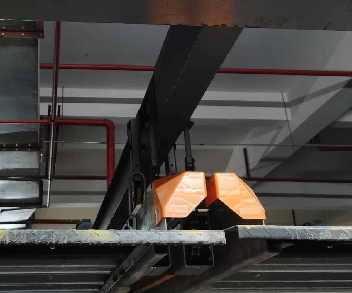 PCS垂直升降式机械式立体车库通过系统升降,并通过机械搬运器实现横移,将汽车停放在井道两侧的停车设备。由金属结构框架、提升系统、搬运器、回转装置、出入口附属设备、控制系统、安全和检测系统组成。垂直升降式自动